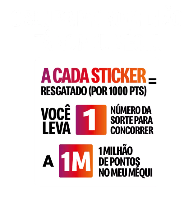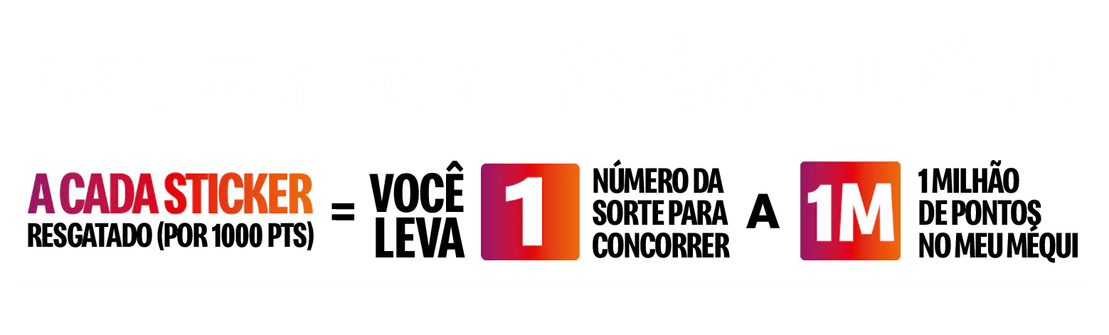 Cada R$1 = 100 pontos no Meu Méqui. Acumule pra trocar por mais Méqui.